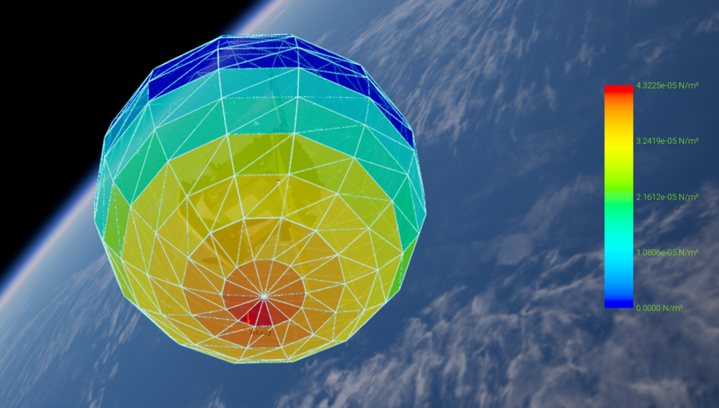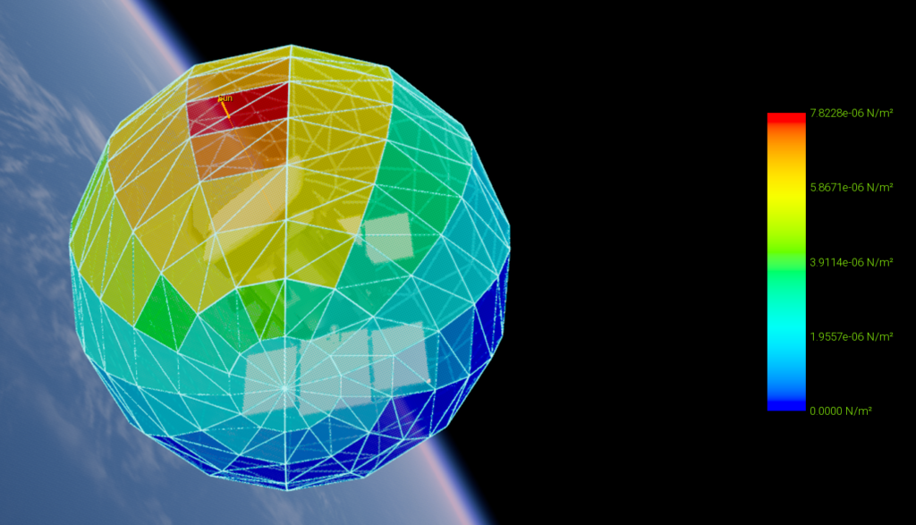 - Visually analyze external perturbations at mesh level, including solar radiation pressure and aerodynamic forces, mapped directly onto the spacecraft geometry