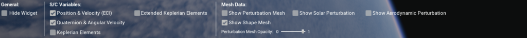 - Toggle perturbation meshes in S/C Data to visually analyze solar and aerodynamic forces (if desired).